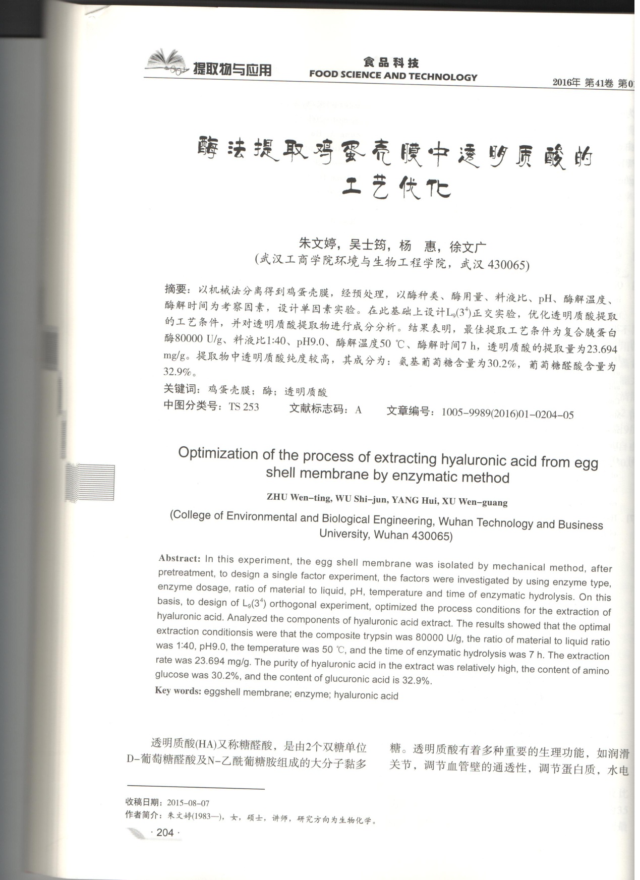 酶法提取鸡蛋壳膜中透明质酸的工艺优化