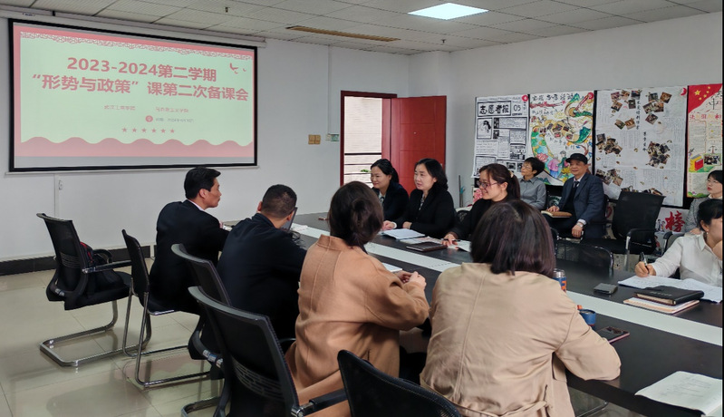 (通讯员 郑欣)为进一步夯实教育教学水平,提升形势与政策课教学质量。4月10日下午,马克思主义学院“形势与政策”课程全体教师在1102会议室开展了2024年上半年“形势与政策”第二次集体备课会,马克思主义学院副院长艾萍、张桂芳及全体教师参会,会议由张玉平教授主讲。