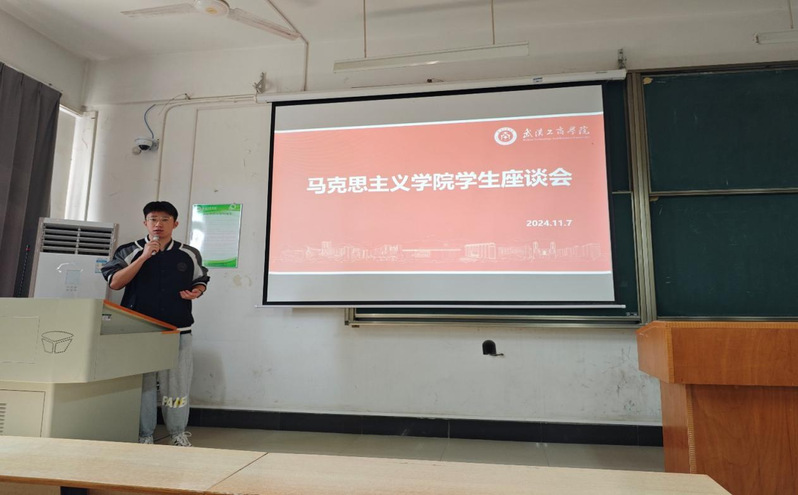 (通讯员 邱雨菡)为扎实推进思政课高质量建设,加强师生间的沟通与交流,马克思主义学院“新思想”教研室于2024年11月7日中午12:40在综合楼402教室举行马克思主义学院学生座谈会。本次备课会由张建宇老师主持,各学生代表进行发言。