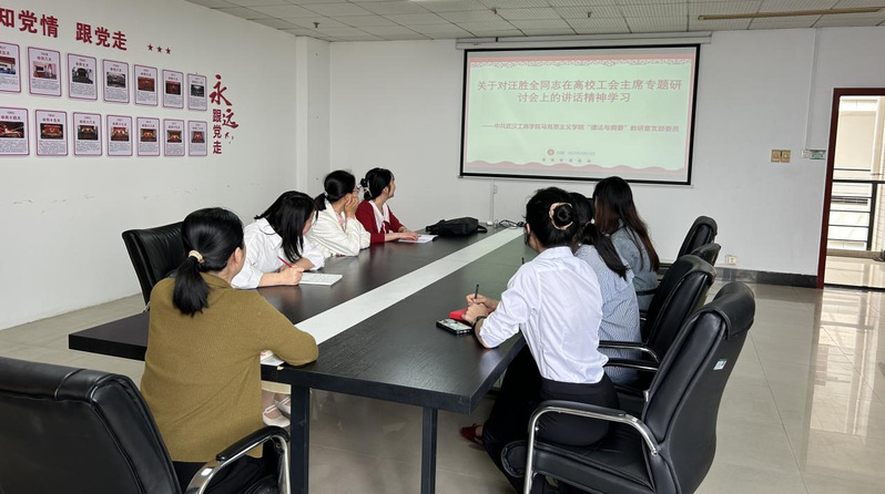 (通讯员 董荟楠)为深入贯彻高校工会工作新理念,提升党支部成员服务教职工效能,4月23日上午10点,中共beat365中文官方网站马克思主义学院“德法与纲要”教研室支部委员会于1102会议室,开展学习《汪胜全在高校工会主席专题研讨会上的重要讲话》精神专题活动。本次活动由党支部书记董荟楠主持。