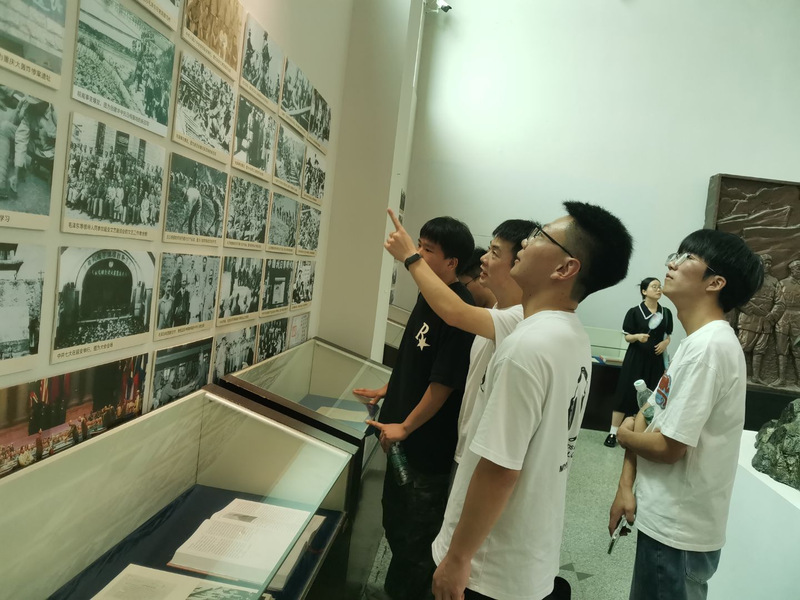 在武汉军民抗战博物馆,一件件承载民族记忆的珍贵文物与图片史料,将师生们带回到全民抗战的峥嵘岁月。斑驳的武器装备、泛黄的作战地图、字迹模糊的烈士家书,尤其是记录武汉保卫战中军民同仇敌忾的影像资料,无声却有力地诉说着这座英雄城市在抗战洪流中的不屈脊梁。师生们驻足凝视,低声交流,课程组教师结合展品现场剖析武汉会战的历史细节与战略意义,将书本理论具象化为可感可知的鲜活教材。学生周晨宇感触尤深:“站在锈迹斑斑的军号前,我仿佛听见了当年的冲锋号角。历史不再是冰冷的文字,它让我真切触摸到‘天下兴亡、匹夫有责’的千钧分量。”