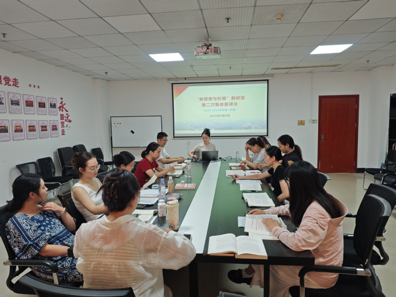 通讯员 卢艳娜)2025年9月4日,马克思主义学院“新思想与形策”教研室在1102教室组织召开《习近平新时代中国特色社会主义思想概论》课程第二次集体备课会。会议由张磊老师主持,教研室全体教师参加。