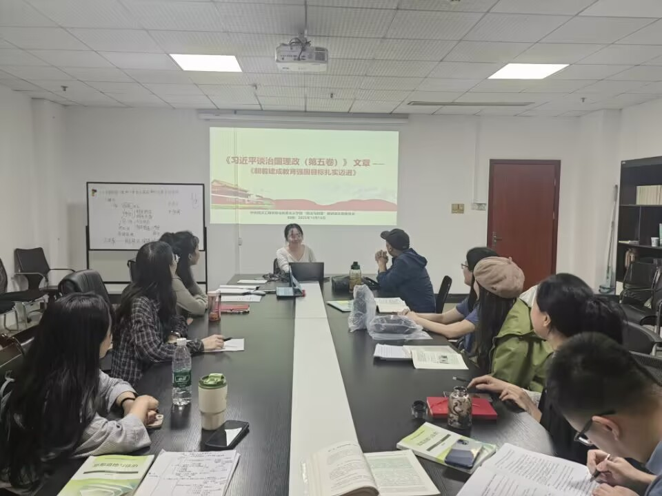 (通讯员 党玉勤)为深刻领会国家发展战略核心要义,准确把握新时代教育工作的前进方向与根本遵循,进一步提升教师队伍的理论素养与育人能力,2025年10月15日,中共beat365中文官方网站马克思主义学院“德法与纲要”教研室支部委员会在1102会议室召开学习《习近平谈治国理政(第五卷)》文章——《朝着建成教育强国目标扎实迈进》的专题活动。本次活动由党支部书记董荟楠主持,党支部全部成员参会学习。