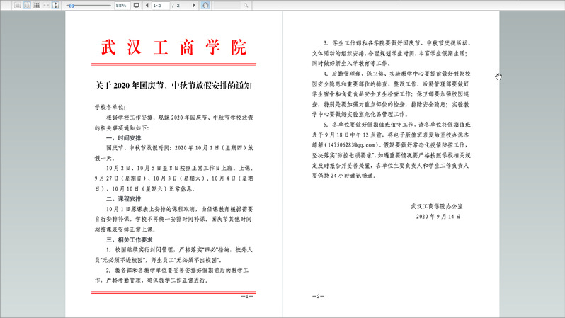关于2020年国庆节、中秋节放假安排的通知