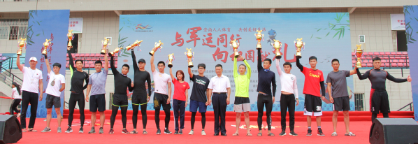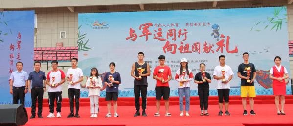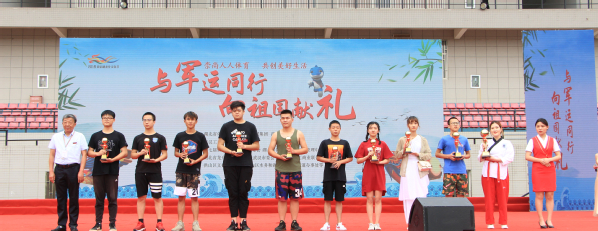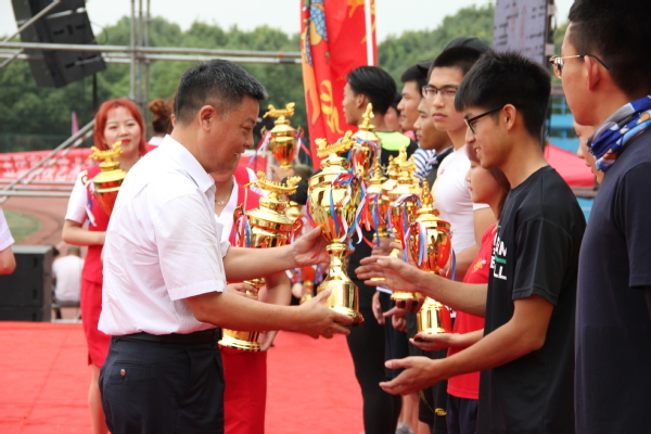 图为刘生元书记为水上龙舟竞速赛获奖代表颁奖 摄影:冯哲昊