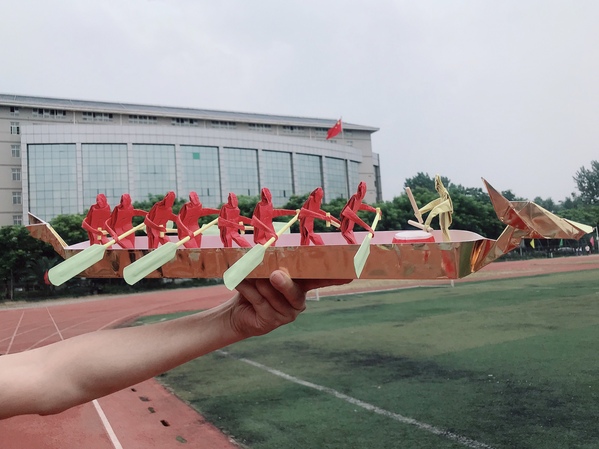 图为用纸折的龙舟造型 摄影:罗袁璐