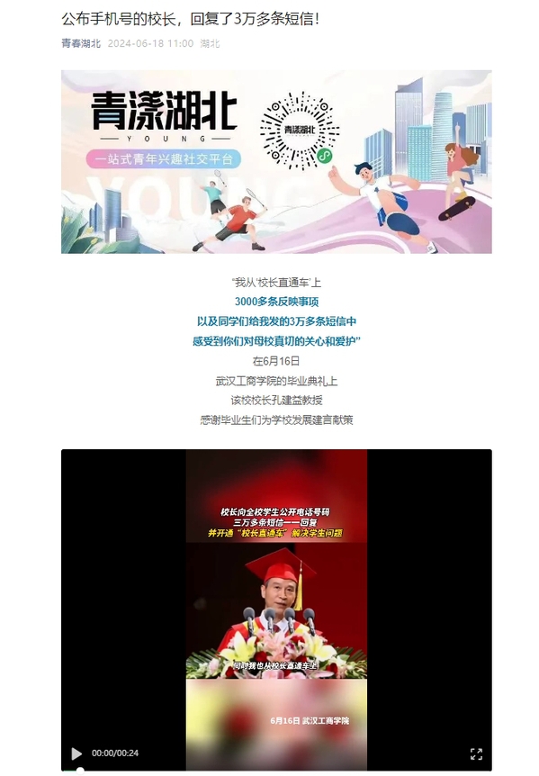 孔建益校长共收到3万多条短信