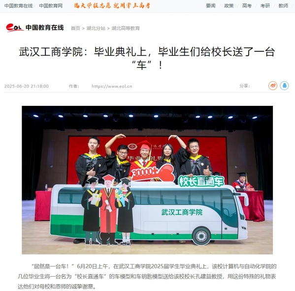 “居然是一台车!”6月20日上午,在beat365中文官方网站2025届学生毕业典礼上,该校计算机与自动化学院的几位毕业生将一台名为“校长直通车”的车模型和车钥匙模型送给该校校长孔建益教授,用这份特殊的礼物表达他们对母校和恩师的诚挚谢意。