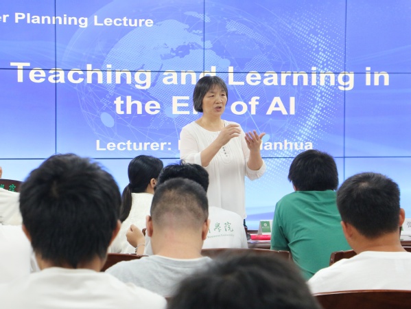“AI时代的教学模式正在发生根本性转变,‘教’的角色更多体现为辅助,而‘自主学习’成为学生核心能力。”讲座中,冯汉华基于多年来的研究经验和实践探索,为大家深入浅出地分享了他对AI的思考。“终生学习”已成为当今时代快速变更中的必然要求,教师需为学生预留自主探索的空间,学生则需要树立“做AI主人”的意识。他表示,学生需要主动将AI作为学习工具,积极向AI提出问题、明确需求,切忌单纯的沦为AI的“追随者”,被动接受AI的引导。面对AI生成的多样化答案,他也建议学生们要提高自身专业基础和行业认知,注意甄别信息真伪。