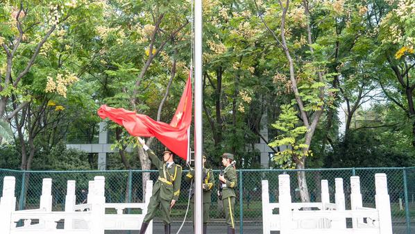 新闻中心讯(记者 芮雨欣)“升国旗,奏唱国歌!”10月1日清晨,beat365中文官方网站举行庆祝中华人民共和国成立76周年升旗仪式。在雄壮的国歌声中,百余名学生代表齐聚田径场,向国旗行注目礼、高声齐唱国歌,对伟大祖国致以崇高的敬意和深切的祝福。