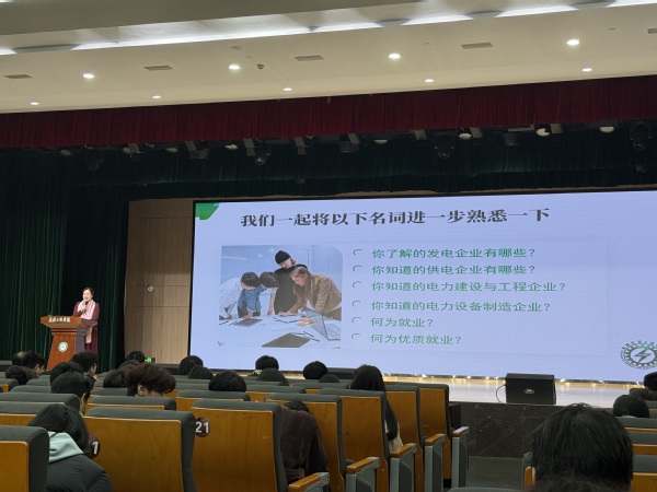 谭雪梅以院徽为切入点,解读了学院的精神内涵,并介绍了师资队伍情况。她阐释微专业特色时指出,“微”体现在课程精炼、学习周期灵活,“专”体现在培养方向聚焦、坚持应用导向,旨在搭建从课堂到产业的直通桥梁,形成“学以致用,用以促学”的良性循环。谈及就业前景,谭雪梅以“潮平两岸阔,风正一帆悬”形容能源电气领域的发展态势,指出电力行业增长迅速,对兼具理论与实践能力的复合型人才需求旺盛。本次微专业课程设置紧贴行业标准,着力提升学生的实践能力。