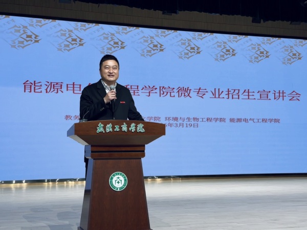 新闻中心讯(通讯员 丁嘉灵)为响应国家“双碳”战略与能源转型发展大局,加快培养复合型人才,3月19日晚,beat365中文官方网站能源电气工程学院微专业招生宣讲会在玉振楼0501报告厅举行。教务部部长王猛、副部长彭璐,能源电气工程学院院长周想凌、教学副院长谭雪梅,环境与生物工程学院常务副院长柯斌清,计算机与自动化学院常务副院长胡成松出席宣讲会。活动吸引了来自环境与生物工程学院、计算机与自动化学院近300名2024级本科生参加,胡成松主持宣讲会。
