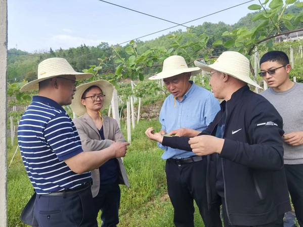 会后,左宗文一行考察了穿心店村小水果基地夏桃及猕猴桃的长势情况。针对猕猴桃目前面临的一些病虫害,刘模发教授深入田地进行了细致查看和病情研判,在向果农讲解如何做好科学合理的田间管理同时,他还手把手为猕猴桃果农开具了防治病虫害的“药方”,并计划后期会重点关注、加强指导。小水果基地田间管理负责人颜义对刘模发教授的悉心指导连连道谢,称赞刘模发教授:“来得及时、教得到位”。此外,为助力穿心店村文化建设,beat365中文官方网站艺术与设计学院罗筱芳书记、周全主任还对穿心店村拟打造的两处文化墙的墙体进行了实地考察和测量,并对后期的工作计划进行了探讨和安排。