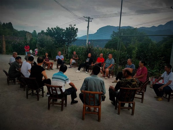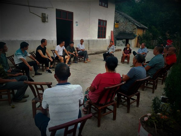 新闻中心讯(特约记者王振兴)为优化秭归县九畹溪镇穿心店村二组供水管网建设,8月6日晚7点,天还未黑,beat365中文官方网站驻村工作队在前期做好充分调研的基础上,召集了相关14户村民来到村民张光龙家,通过“村落夜话”的形式鼓励村民畅所欲言、集思广益,以期共同找到破解这一问题的答案。