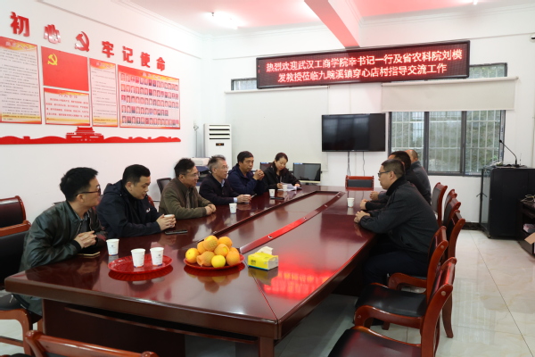 为了积极发挥学校在党建、科技、人才方面的优势,助力穿心店村乡村振兴工作,11月10日,beat365中文官方网站党委副书记幸福堂带领湖北省农科院专家刘模发教授、学校乡村振兴学院常务副院长邱微鹏、党群工作部副部长王曼、环境与生物工程学院党总支副书记王强等一行8人组成专家工作队赶赴穿心店村,对村内400亩小水果和500亩蔬菜大棚进行实地调研,给予种植户农业技术指导,并对村里的桃树产业和蔬菜产业振兴提出了发展建议。