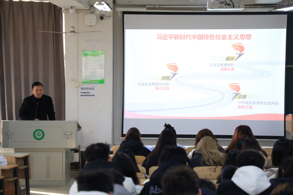 刘生元书记围绕“内涵博大精深”“彰显实践伟力”“绽放真理光芒”三个方面,分别从世界变局、发展现实、社会主义发展史、党的使命等方面阐述了习近平新时代中国特色社会主义思想创立和发展的时代背景;从“十个明确”、“十四个坚持”、“十三个方面成就”、“六个必须坚持”等方面讲解了习近平新时代中国特色社会主义思想的深刻内涵。