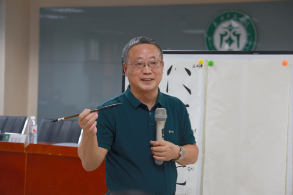图为左宗文副校长讲授书法知识 摄影:芮雨欣