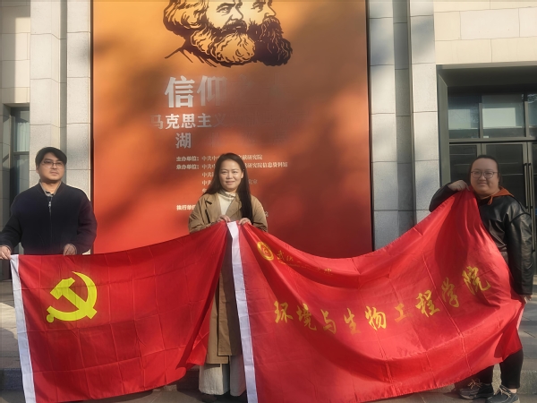 为深入学习贯彻马克思主义中国化时代化最新成果,坚定理想信念,强化使命担当,2025年11月20日下午,环生学院党总支三位支部书记怀着崇敬之心,赴华中师范大学参观“信仰之光——马克思主义文献典藏展”湖北巡展。环境与生物工程支部书记郑丹、生物制药支部书记陈卓、行政支部书记陈英共同参与了此次沉浸式学习活动,在珍贵文献与历史叙事中感悟真理力量,传承红色基因。