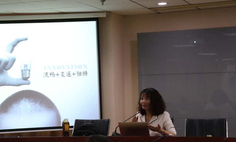 随后,杜莉副教授总结了自己在武汉大学教授《创新学》课程的实践经验,并分享了自己赴美国读博时体验中美教育文化差异的经历。她表示,一个人一天中的行为有95% 是属于习惯性的,只有5% 是属于非习惯性,如何克服思维定势,就是换一种方式思考问题。“创造学第一定律:人人皆有创造力!在思考有待创新的问题时,要学会主动摆脱原有的思维模式,将思路指向新的领域和新的客体。” 杜莉副教授说道。