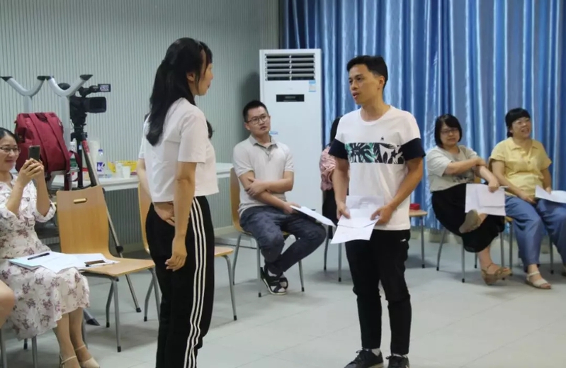 图为老师们正在做沟通练习 摄影:孙贝贝
