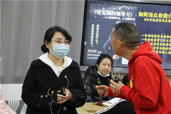 随后,刘文科老师邀请了三位教师在现场依次用一分钟的时间介绍自己及自己所在的部门。他表示在众人面前自我介绍时要注意提升形象、弱化缺点,可围绕五个“一句话”来展开:一是一句话说清楚名字的故事;二是一句话说清楚干什么事;三是一句话说清楚你获得的荣誉;四是一句话说清楚你提供的价值;五是一句话说清楚对他人的期望。“这五个‘一句话’可作为自我介绍的模板,增强管理人员的沟通交流能力,为领导者赢得尊敬和信任。”刘文科老师说道。