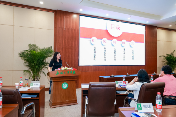 图为王莹老师在会上作报告