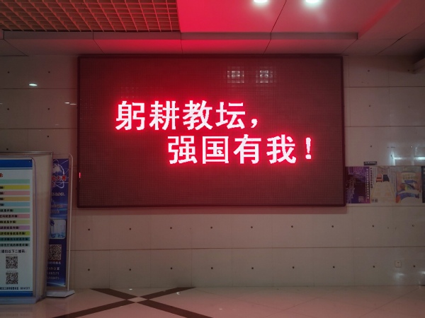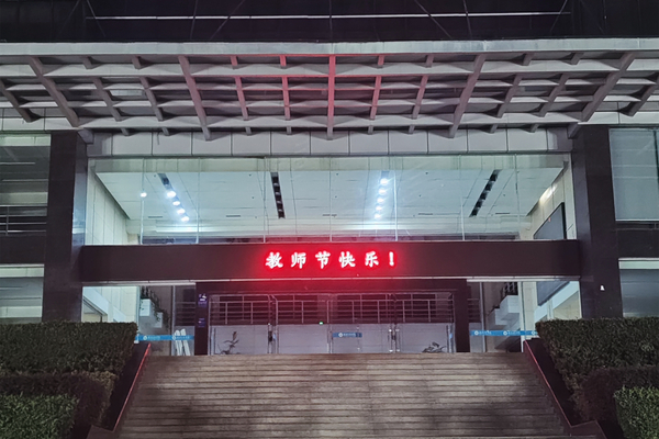 学校图书馆、综合楼、外语艺术楼、实验教学中心四个教学区域通过LED字幕滚动方式为教师亮灯,亮灯主题词为“躬耕教坛,强国有我”“祝全体教师节快乐!”“老师,您辛苦了!”以亮灯的形式向全校广大教师致以节日问候和崇高敬意,营造良好氛围。