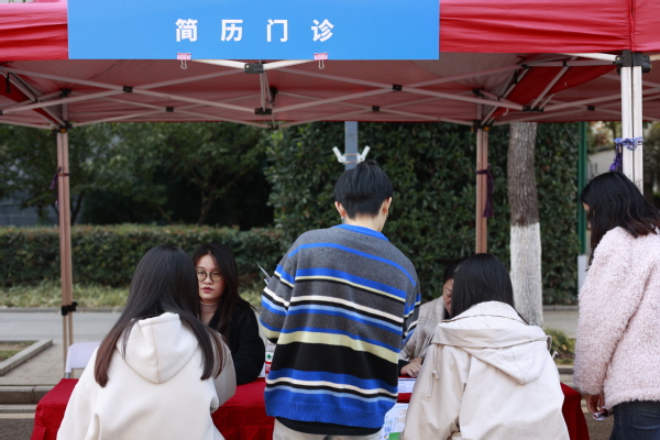 为了方便学生们更好地投递简历、快速找到心仪工作,招聘会现场设立了“就业服务区”。洪山区委组织部、洪山区人力资源局、洪山公安分局等单位的工作人员向大学生推介武汉安居落户、就业创业等方面政策。此外,学校还设立了“简历门诊”展位,指导求职学生完善简历,挖掘、整合自身优势,针对目标岗位更好地推介自己。
