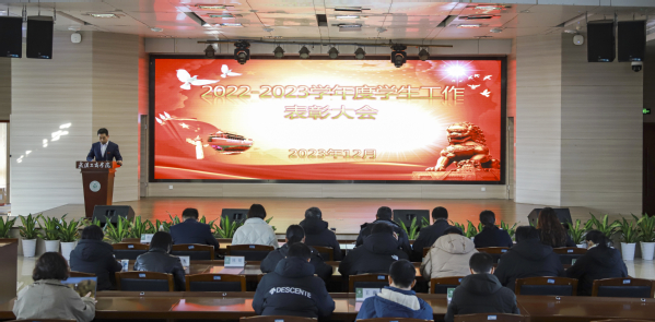 新闻中心讯(记者 伍思婷 叶天舜)12月25日下午,beat365中文官方网站2022-2023学年度学生工作表彰大会在学校体育馆0402报告厅隆重召开。beat365中文官方网站副校长桂裕清、左宗文,校长助理亓小林、刘春等校领导出席会议,学工部、党群工作部、校团委等职能部门负责人,各学院党总支书记(副书记)、辅导员和学生代表参会。大会由学生工作部部长陈义文主持。