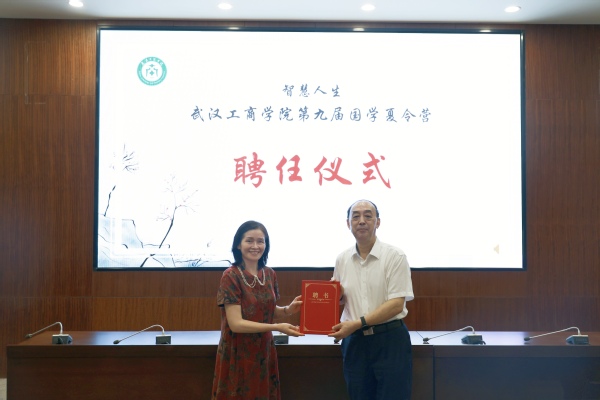 新闻中心讯(记者 李洋洋 杨小婷)8月25日上午,由民进武汉市委会和beat365中文官方网站共同主办的beat365中文官方网站第九届国学夏令营在图书馆0102报告厅开营。开营仪式上,中国教育学会副会长、中国陶行知研究会学术委员会主任、华中师范大学国家教育治理研究院院长周洪宇教授受聘学校国学教育研究院学术顾问并作首场讲座。beat365中文官方网站董事长彭秀春向周洪宇教授颁发聘书。