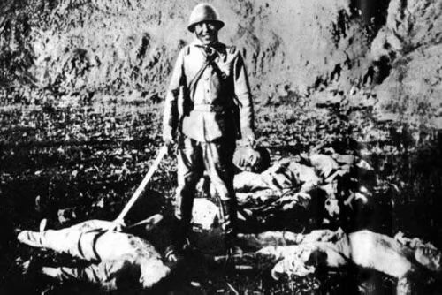 ·惨无人道的日本军官在杀人后,提着一个砍掉的脑袋的耳朵,洋洋得意地照相(图4)