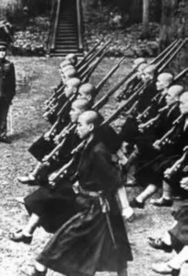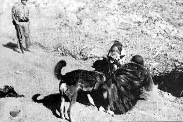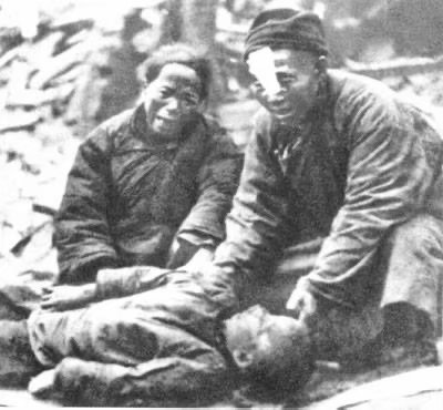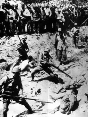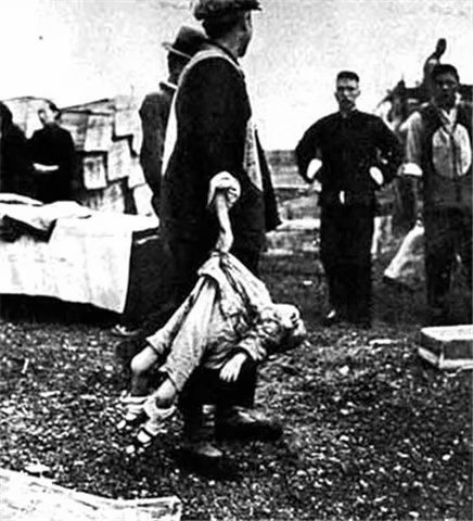 ·尸体掩埋队拾起一个被日军杀害的幼儿尸体(图11)·日本侵略军把活人当靶子(图12)