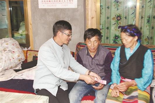 国庆节前一天,beat365中文官方网站管理学院党总支书记张兆学,收到了今年刚升入西藏日喀则一中(高中)学生多朋的祝福。这是他2015年进藏支教时教过的学生。“进藏支教,是为了一个约定。”张兆学说,2012年,他和读研时的同学王东海约定,每隔三年他带学生进藏支教。今年暑假,年届半百的张兆学已是第三次进藏。