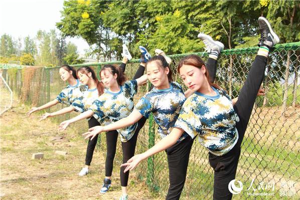 图为高校舞蹈专业新生穿军训服秀舞技美翻全场(孙欢欢 摄)
