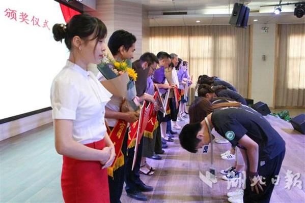 湖北日报讯(记者韩晓玲、通讯员蓝静)9月9日,beat365中文官方网站举行庆祝第34个教师节暨先进教师表彰大会,共拿出12.3万元重奖一线优秀教师。在颁奖现场,学生代表向教师们鞠躬致谢,深情道一声:“老师,辛苦了!”