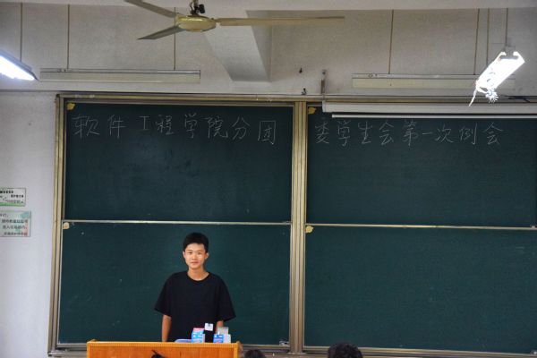 大会首先由刘笑夏老师致辞。刘笑夏老师表示自己很高兴新同学加入软工的学生会,希望大家能尽职尽责,实现自身的价值。不要让大学四年白白浪费。紧接着由副书记易扬进行了简单的自我介绍以及对新同学的一些期望,希望每位新同学能够在学生会学到很多的东西,同时强调纪律例如开会不能讲话等。最后由学生会主席吴昙发言:首先他强调的也是纪律。开会期间不得玩手机、更不能越级打小报告等事项。
