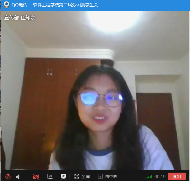 (通讯员:冷雨丹)2020年4月8号晚七点,软件工程学院学生会招生视频和大一部员的自我述职在QQ上顺利进行。学生会主席吴昙,分团委副书记易扬,及学生会全体成员参加。本次会议由学生会主席吴昙主持。