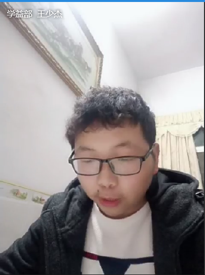 学益部王少杰:在学生的大家庭中我学到了许多,主要有以下几点:1.团结,在做一件事上,可能一个部门要花费很多的时间和精力,但如果将事情进行分类,由各部门分工完成,将会大大提高工作效率;2.遇到事情要冷静,如果做一件事遇到困难,必须冷静,没有闯不过的关卡,没有过不了的难关,冷静下来,一切问题都会迎刃而解;3.遇事三思而后行,做一件事时,一定要经过慎重的考虑,争取将事情一次性做好,不然将会花费更多的时间和精力去解决这件事。