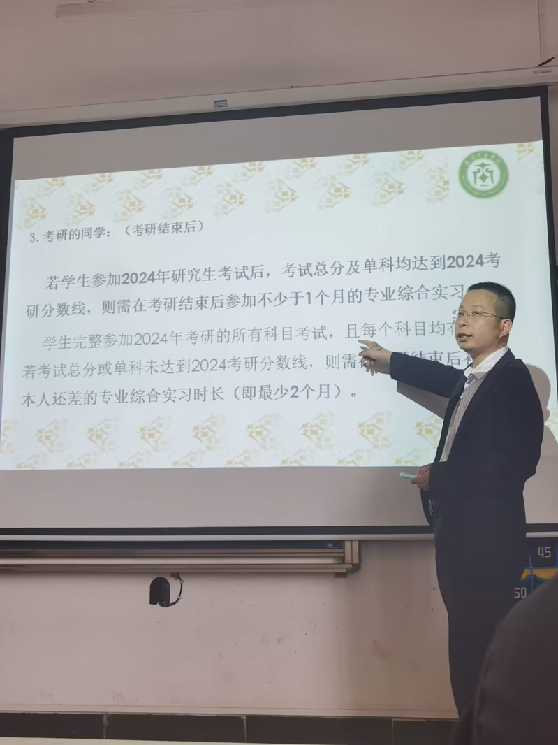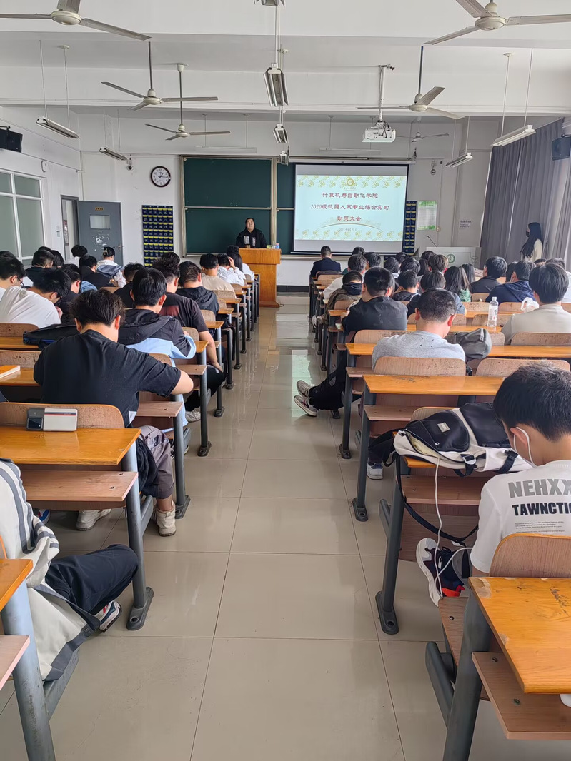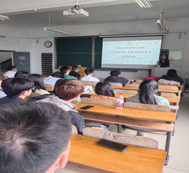 新闻中心讯(通讯记者:周阳钰)2023届专业实习动员大会在beat365中文官方网站综合楼211正式开展,教学副院长胡成松针对20级机器人系关于考研、考公、和常规情况的专业实习要求和具体安排以及院长刘雄华对专业实习中的日常出勤打卡、与实习指导老师的联系要求进行了强调,党总支书记吴艳对专业实习期间的学校住宿、评优安排和求职简历要点进行了解说。
