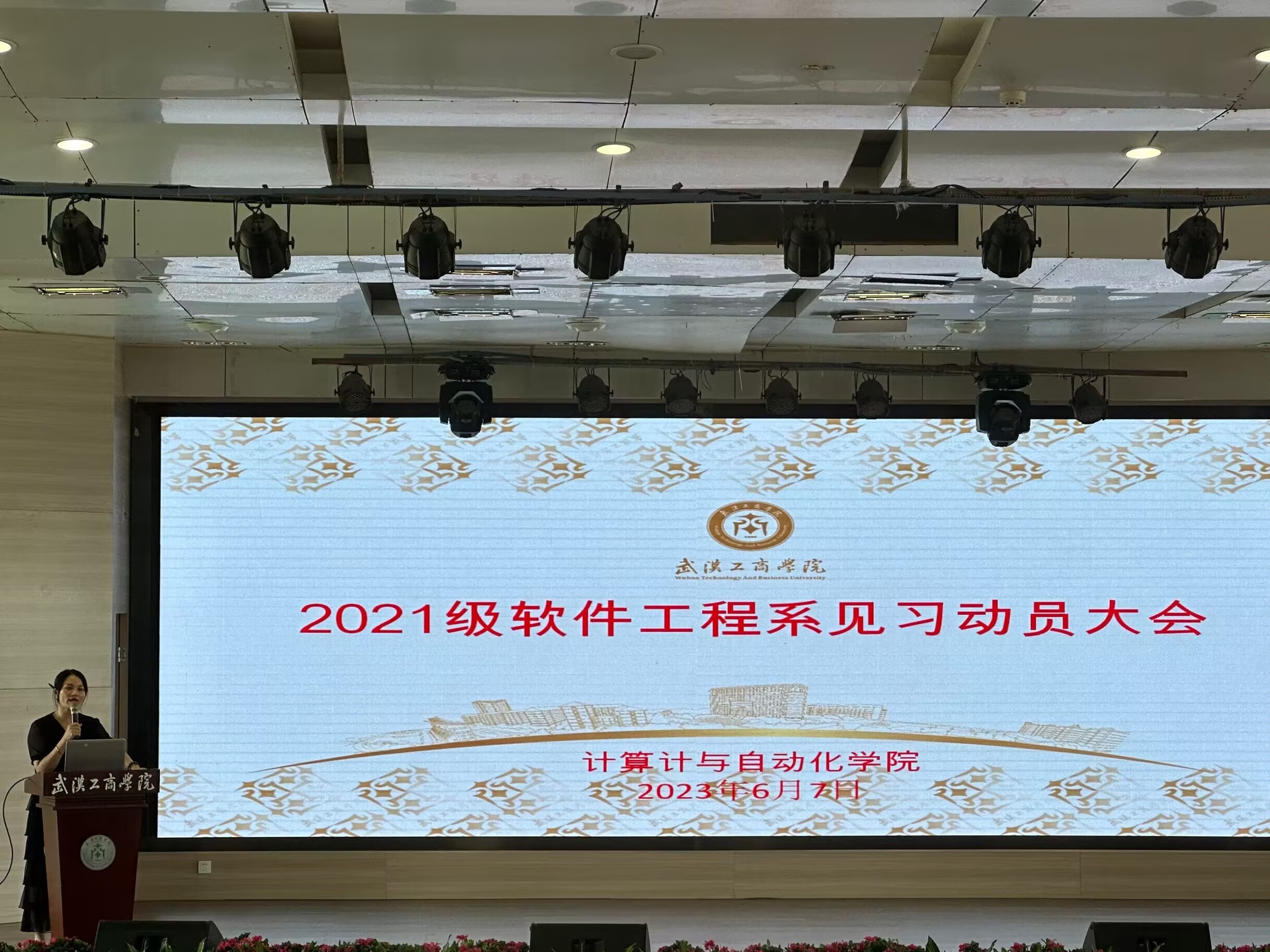 6月7日中午,我院在体育馆402召开2021级专业见习动员大会,胡成松院长,党总支吴艳书记,系主任陈立佳老师,校友吴宝成以及子杰公司代表罗阿丽老师,辅导员王玲芳老师及2021级软件工程系的全体学生参加本次会议。