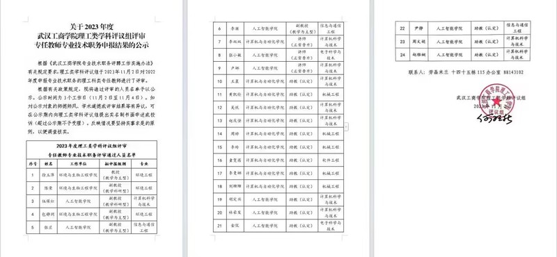 关于2023年度beat365中文官方网站理工类学科评议组评审专任教师专业技术职务评审结果的公示