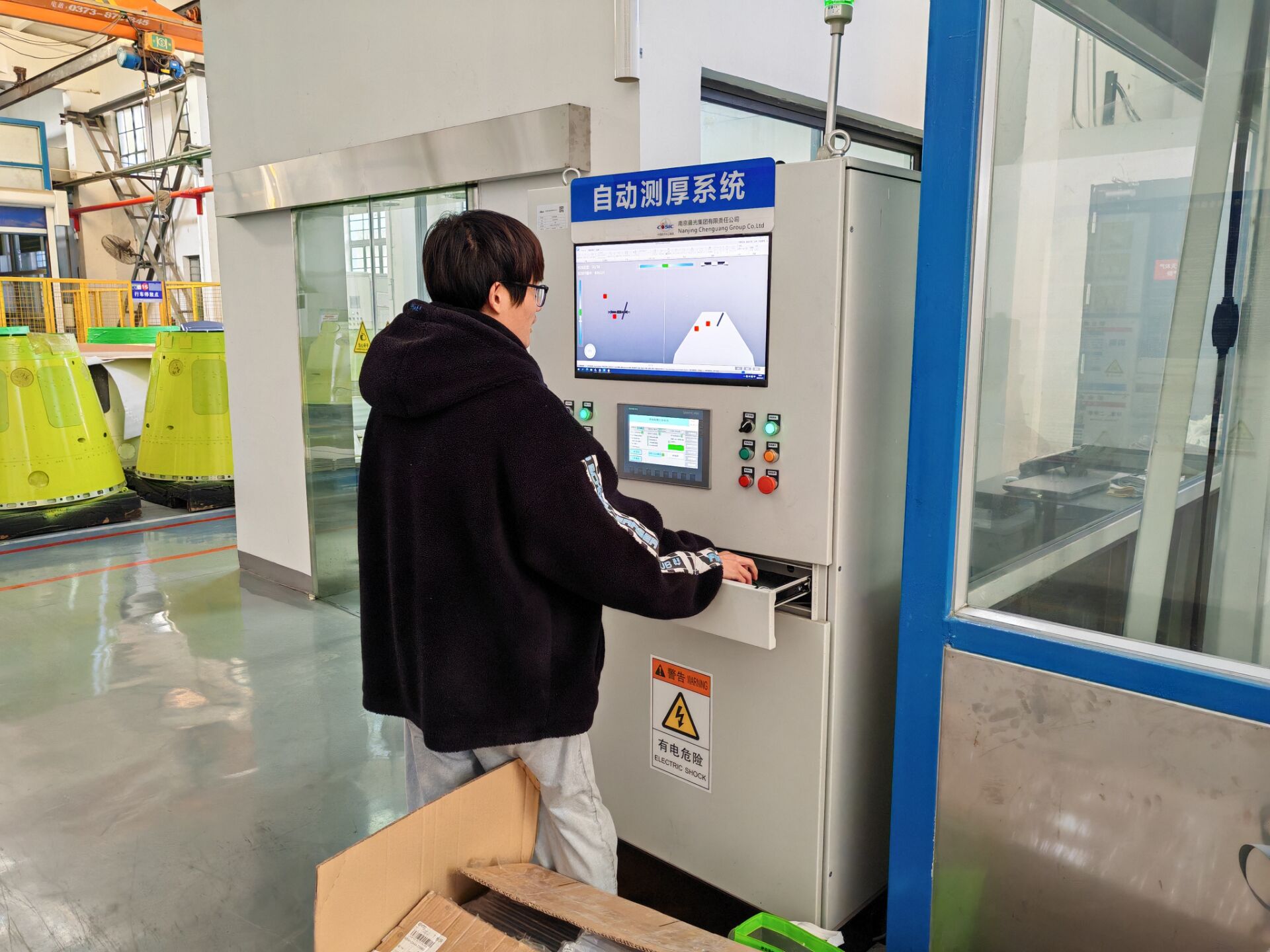 上图为机器人工程专业学生杨明军操作设备