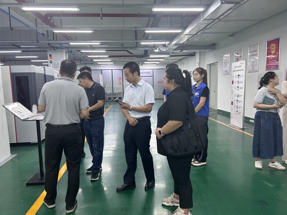 图为华工激光生产车间设备的讲解与参观