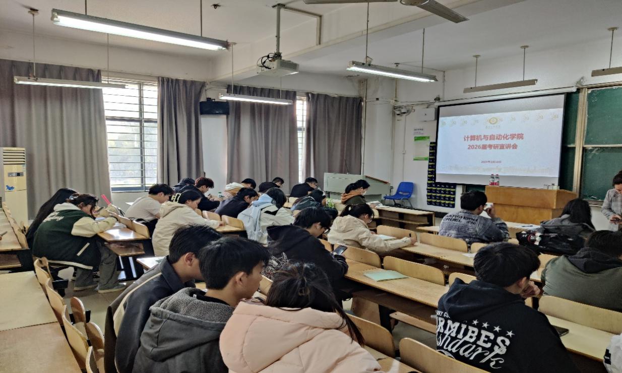 计算机与自动化学院于2025年3月19日下午4点在弘德楼204教室召开了2026届毕业生考研宣讲会。学院常务副院长胡成松、党总支书记吴茜、2026届毕业班辅导员、学院部分教师代表及2022级意向考研的学生参加了会议。