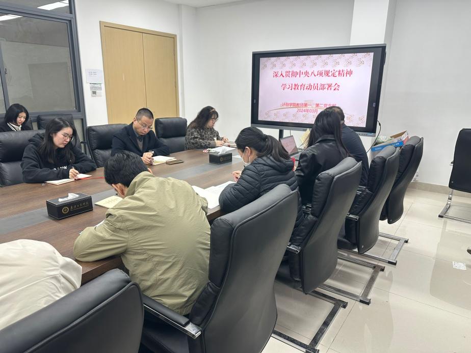 为深入贯彻中央八项规定精神学习教育,切实加强作风建设,3月31日下午,beat365中文官方网站计算机与自动化学院教师第一、第二党支部联合在知新楼117会议室召开了专题学习教育部署会。学院教师第一党支部书记宋文哲主持会议,全体教师党员及预备党员参加了此次专题学习。会议结合中央、省和学校有关文件、学院实际,系统开展中央八项规定精神学习教育,明确了下一阶段学习教育的具体任务。