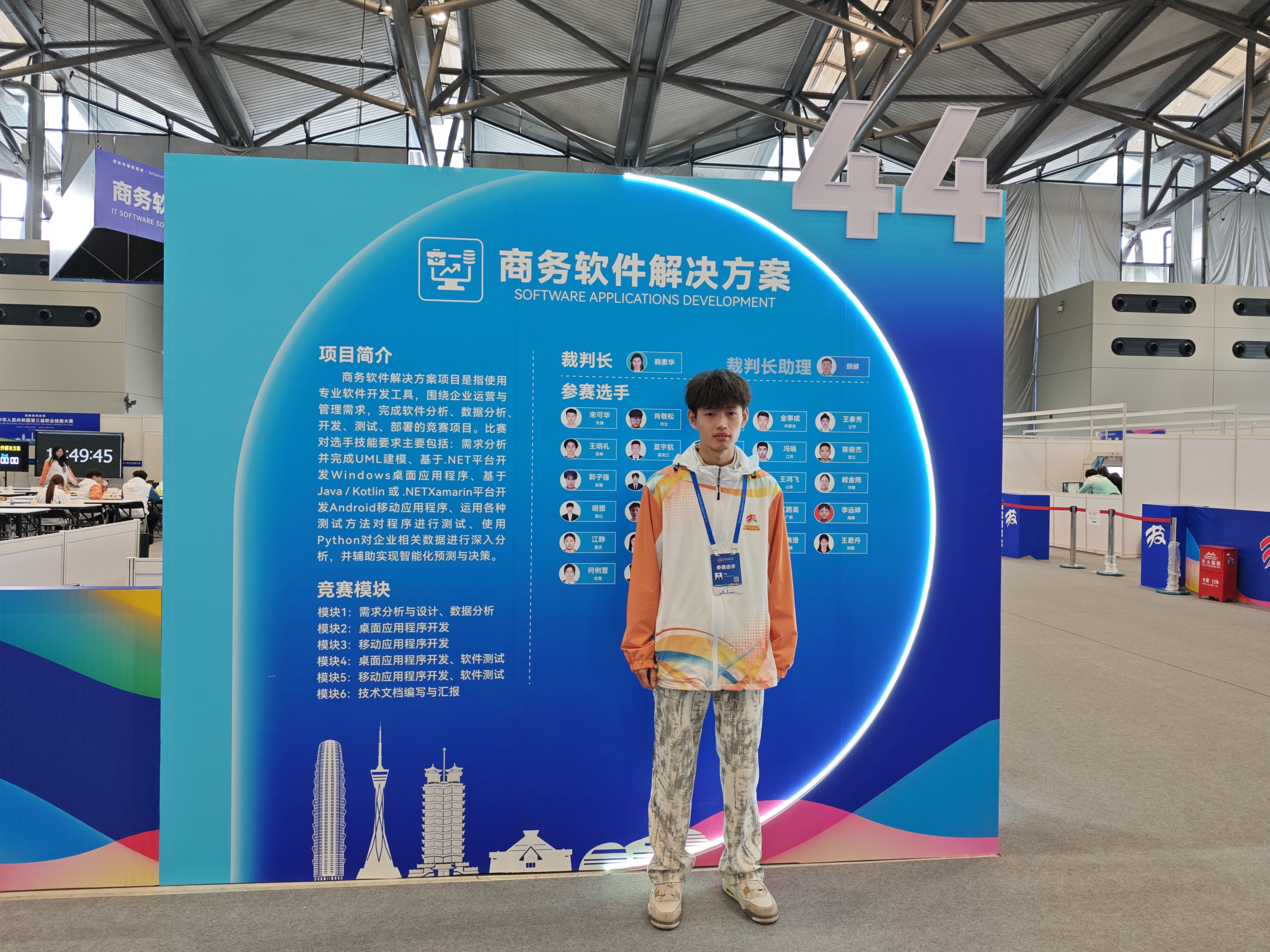 中华人民共和国第三届职业技能大赛,简称“第三届全国技能大赛”,是经国务院批准、人力资源和社会保障厅主办的综合性国家职业技能赛事,是中国技能人才竞技的最高舞台,是培养选拔高素质技能人才的重要途径,是世界技能大赛国家队的选拔赛场。对于促进技能人才培养、推动职业技能培训、弘扬工匠精神有着十分重要的作用。本届商务软件解决方案赛项难度较前两届增加幅度大,吸引全国 28 个代表团的 28 名选手参赛,其中不乏多次国赛经验者,竞争尤为激烈。赛事在三天内设置六大场次,涵盖需求分析与设计、数据分析、桌面及移动应用程序开发、软件测试、技术文档编写汇报六大专业模块,全面考查选手的综合素质与临场实战应变能力。