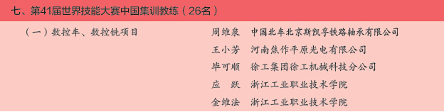 五、对在第41届世界技能大赛参赛工作中做出贡献的周维泉等26名集训教练,予以通报表扬。