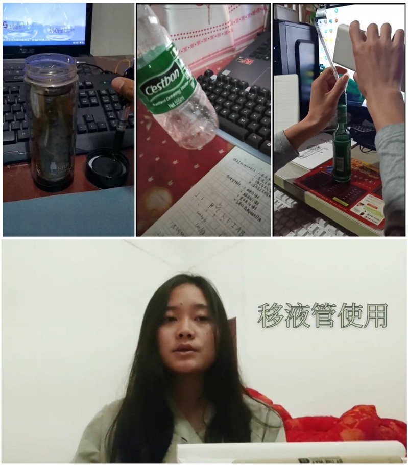 教练员团队们指导选手们以任务为依托,经过多次“输入→内化→输出”的循环,反复强化选手对基本操作的理解,直到他们能用自己的语言自然地将操作过程和要点表达并模拟演示出来。实地操作训练无法进行,但学习和提升不能停,有的选手以家里的水杯替代,练习各项基本操作,通过模拟训练、自我展示,实现实操能力的内化和提升。