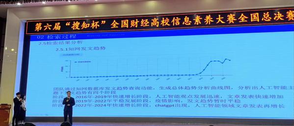 在总决赛现场,3位参赛学生凭借优秀的信息素养、扎实的专业基础和稳定的现场发挥,完成了在线准确答题和精彩的汇报展示,全面展示了他们的信息素养能力和团队协作精神,获得本科生组“优秀奖”的好成绩。