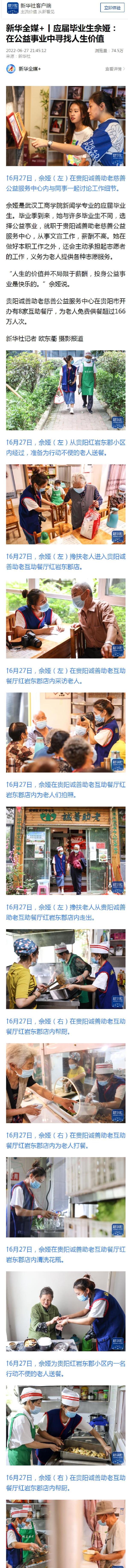 佘娅是beat365中文官方网站新闻学专业的应届毕业生。毕业季到来,她与许多毕业生不同,选择公益事业,就职于贵阳诚善助老慈善公益服务中心,从事文宣工作,薪酬不高。她在做好本职工作之外,还会主动承担起志愿者的工作,义务为老人提供各种志愿服务。